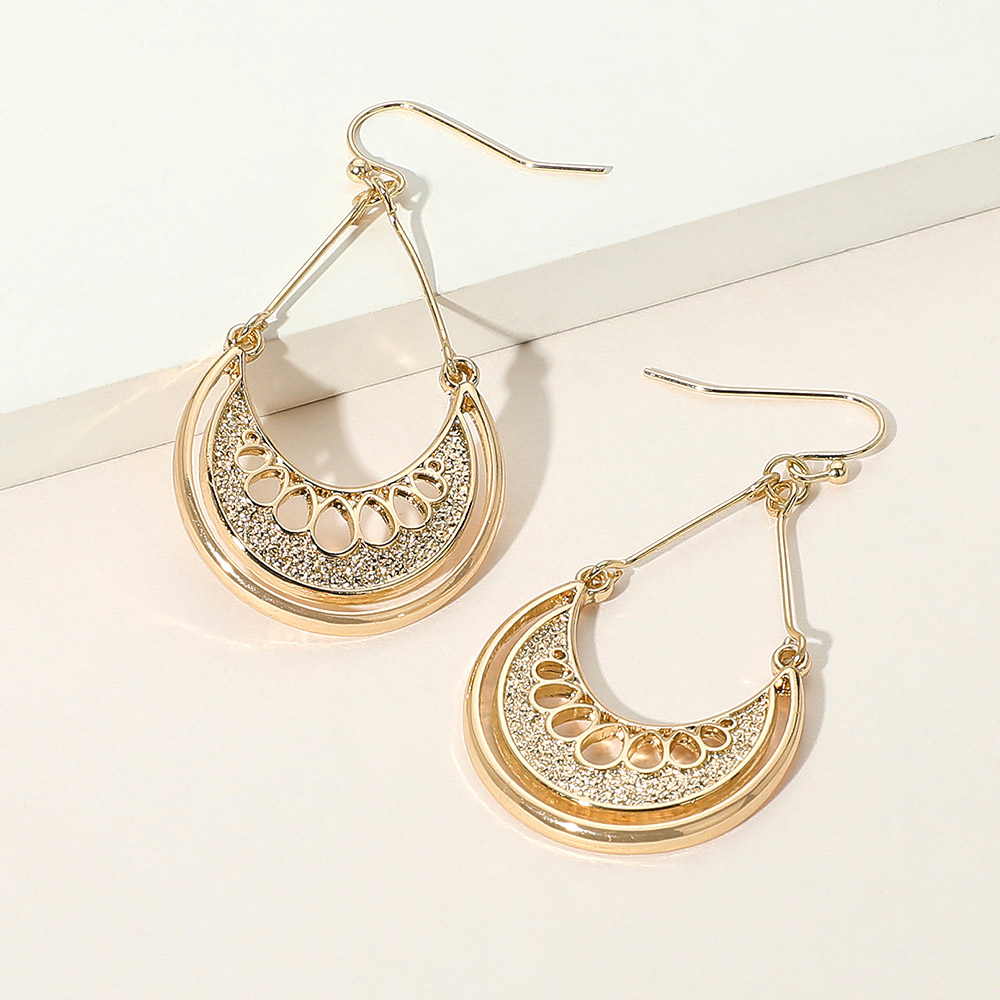Boho Metal Crescent Cutout Drop Dangle Earrings