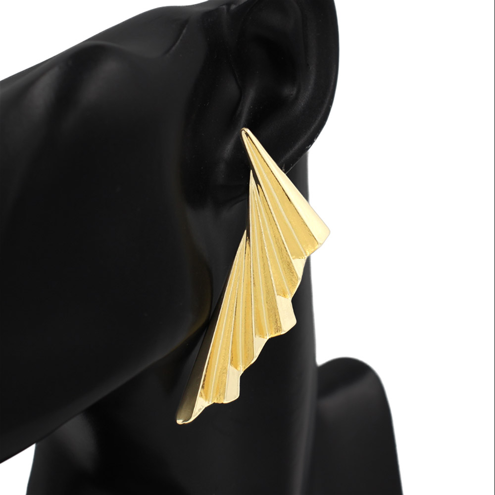 Details • Size : 0.8" X 2.7" • Post Back • Striking sculpted fan drop earrings designed with bold, dimensional lines that create a modern, architectural look. Lightweight yet impactful, these statement earrings elevate casual and dressy outfits alike, making them a standout accessory for any occasion. • Lead and Nickel Compliant