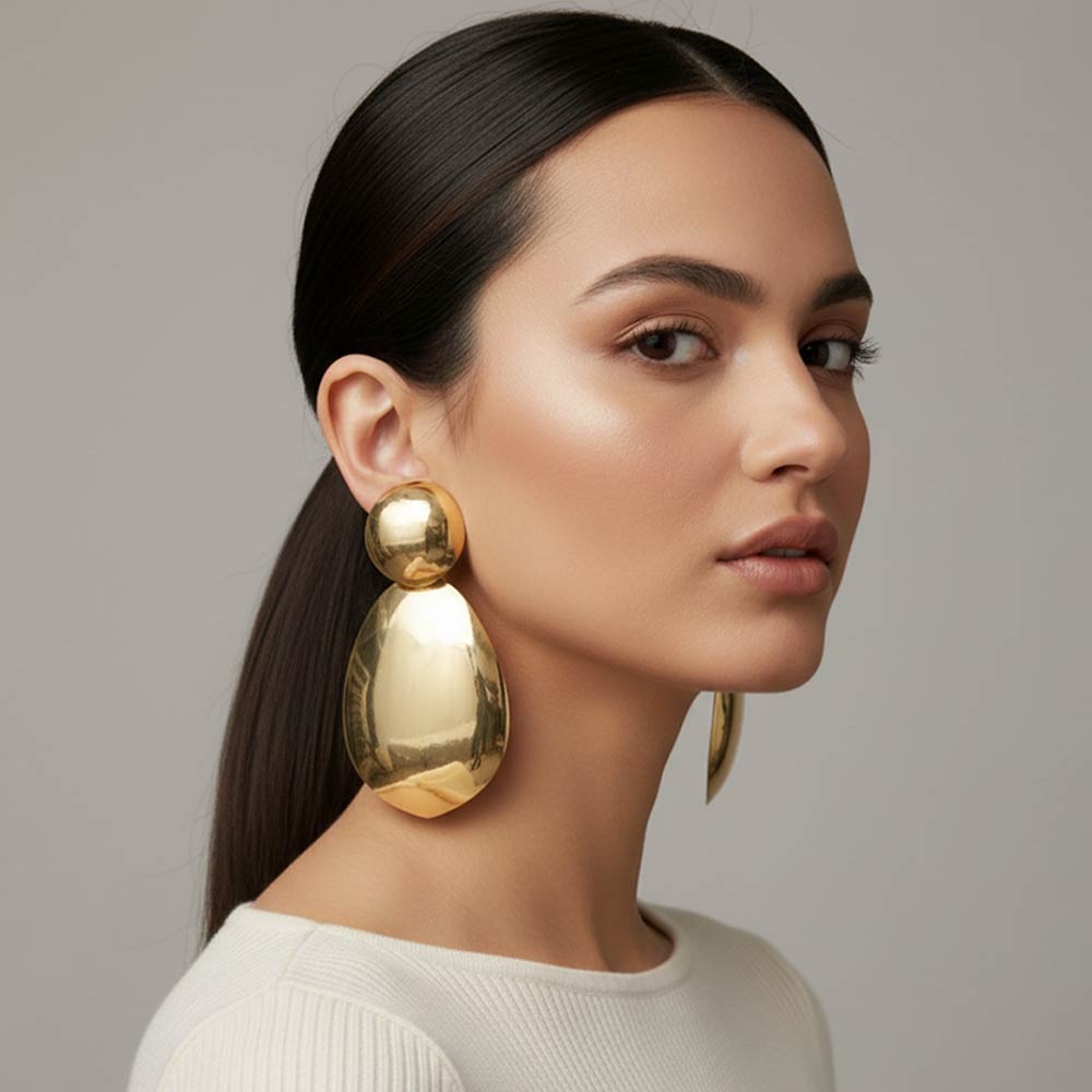 Details • Size : 1.75" X 3.5" • Post Back • Bold statement stud earring featuring a sculptural drop silhouette with an organic shape. Designed to add dramatic impact and modern elegance to any look, this eye-catching piece is perfect for boutique assortments, special occasions, and standout styling. • Lead and Nickel Compliant