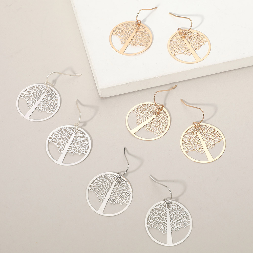 Brass Matte Metal Tree of Life Filigree Dangle Earrings