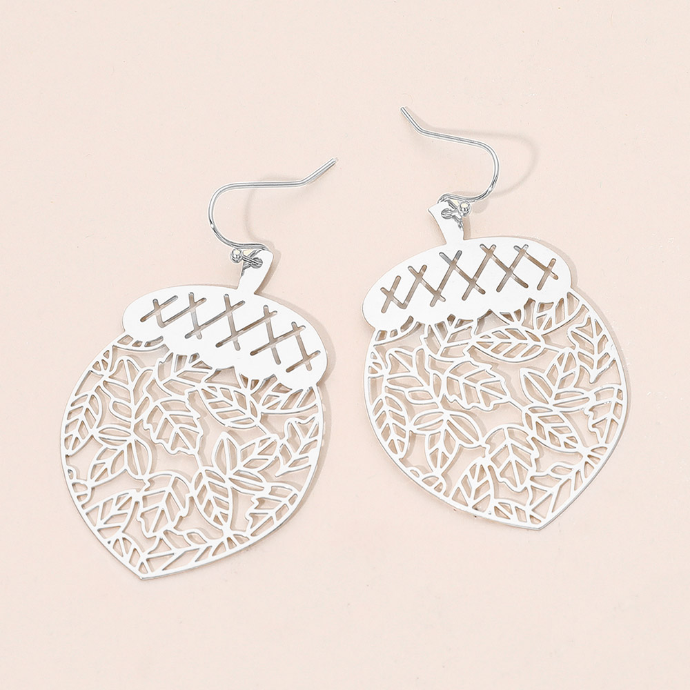 • Add a touch of woodland charm with these leafy acorn cutout drop earrings. Designed with intricate leaf patterns and a delicate acorn silhouette, they bring nature-inspired elegance to any outfit. Perfect for casual wear or dressing up with a whimsical and stylish flair.