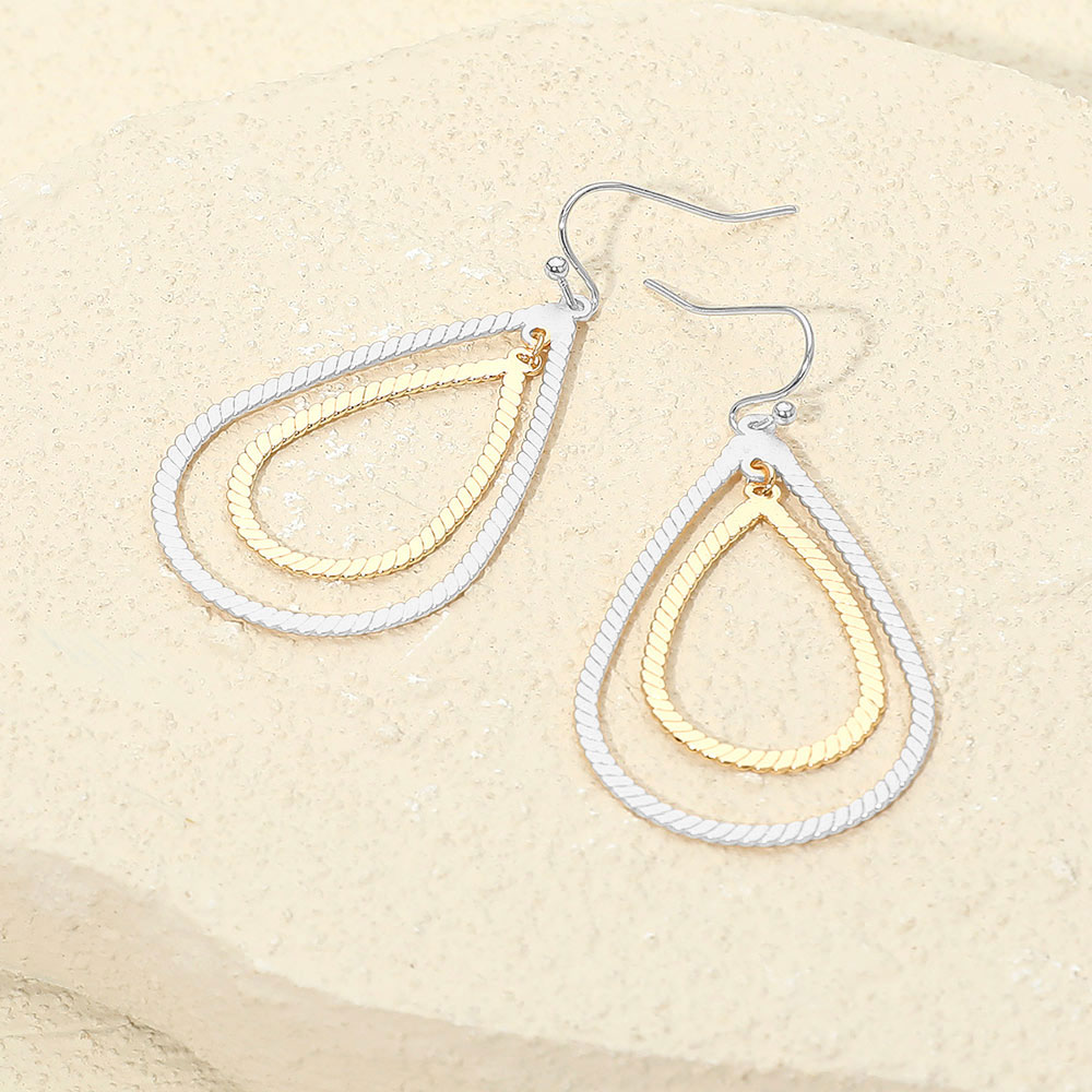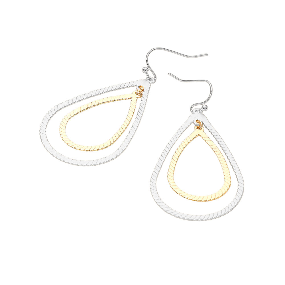 • Elegant double teardrop dangle earrings with a textured finish, offering a lightweight and stylish accessory for any outfit. Perfect for everyday wear, special events, or gifting to someone special.
