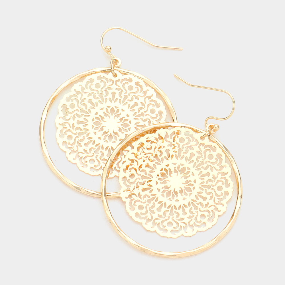 Filigree Metal Open Circle Layered Dangle Earrings