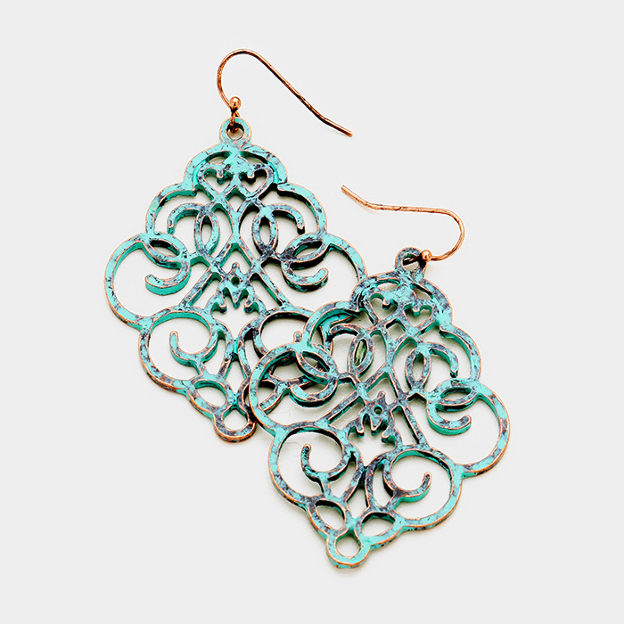 Flower Leaf Metal Filigree Round Dangle Earrings