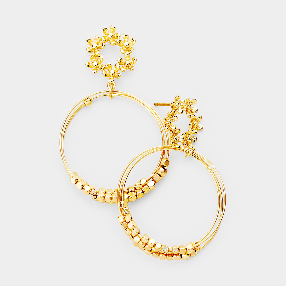 Floral Metal Beaded Round Dangle Earrings