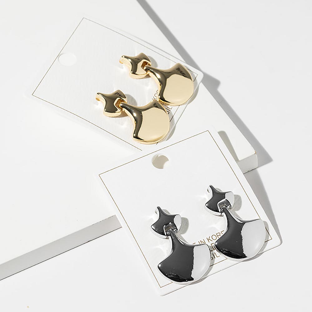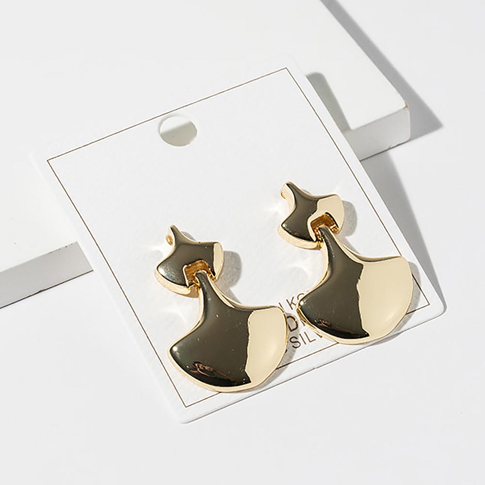 • Modern abstract fan shape drop stud earrings featuring a smooth sculptural silhouette with a subtle dangle design. A stylish choice for everyday wear or elevated looks, ideal for boutiques seeking contemporary, minimalist jewelry with versatile appeal and trend-forward elegance.