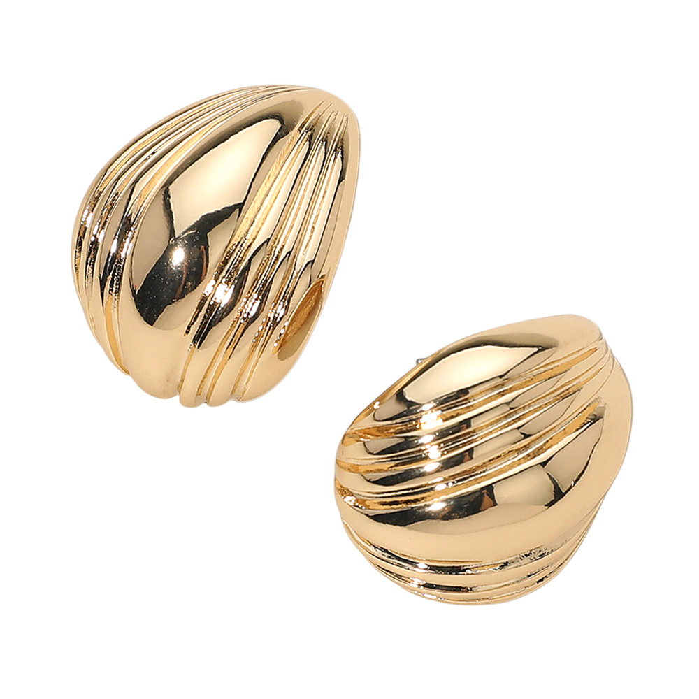 • Bold ribbed dome stud earrings featuring a smooth, polished surface with layered groove detailing. A stylish, sculptural design that adds standout shine and modern elegance, perfect for completing everyday or occasion looks.
