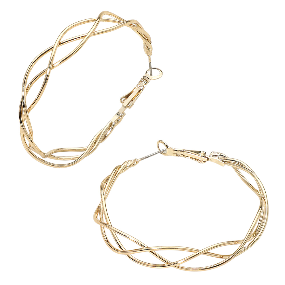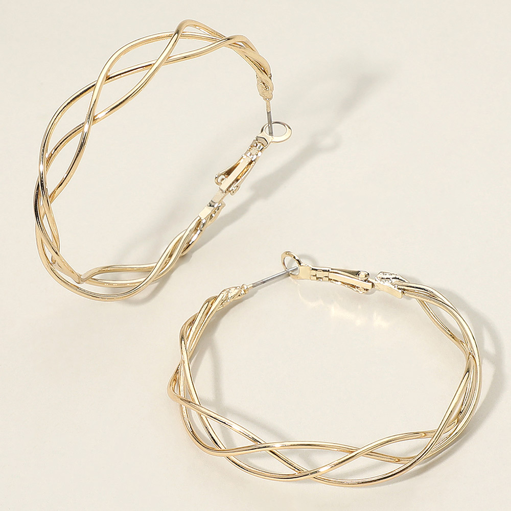 • Stylish hoop earrings featuring an elegant twisted wire crossover design for a dimensional, modern look. Lightweight and versatile, they add polished sophistication to everyday outfits or elevate evening ensembles with their airy sculptural style.