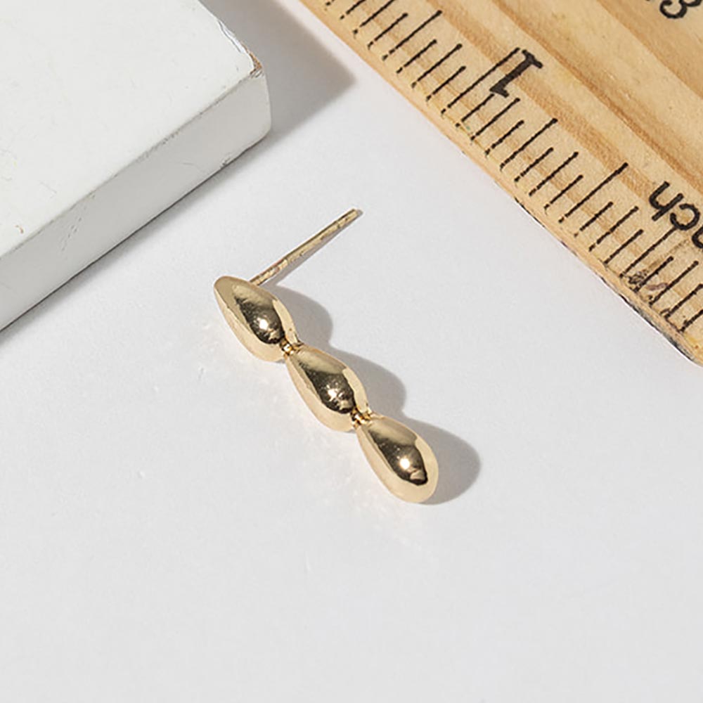 Details • Size : 0.2" X 0.9" • Elegant stud earrings featuring a sleek triple drop design with softly rounded shapes arranged in a vertical silhouette. Designed to add subtle movement and refined style, these studs are perfect for everyday wear, work outfits, and dressy occasions, offering modern simplicity and timeless appeal for any jewelry collection. • Gold Dipped • Lead and Nickel Compliant • Made In Korea • Sterling Silver Post