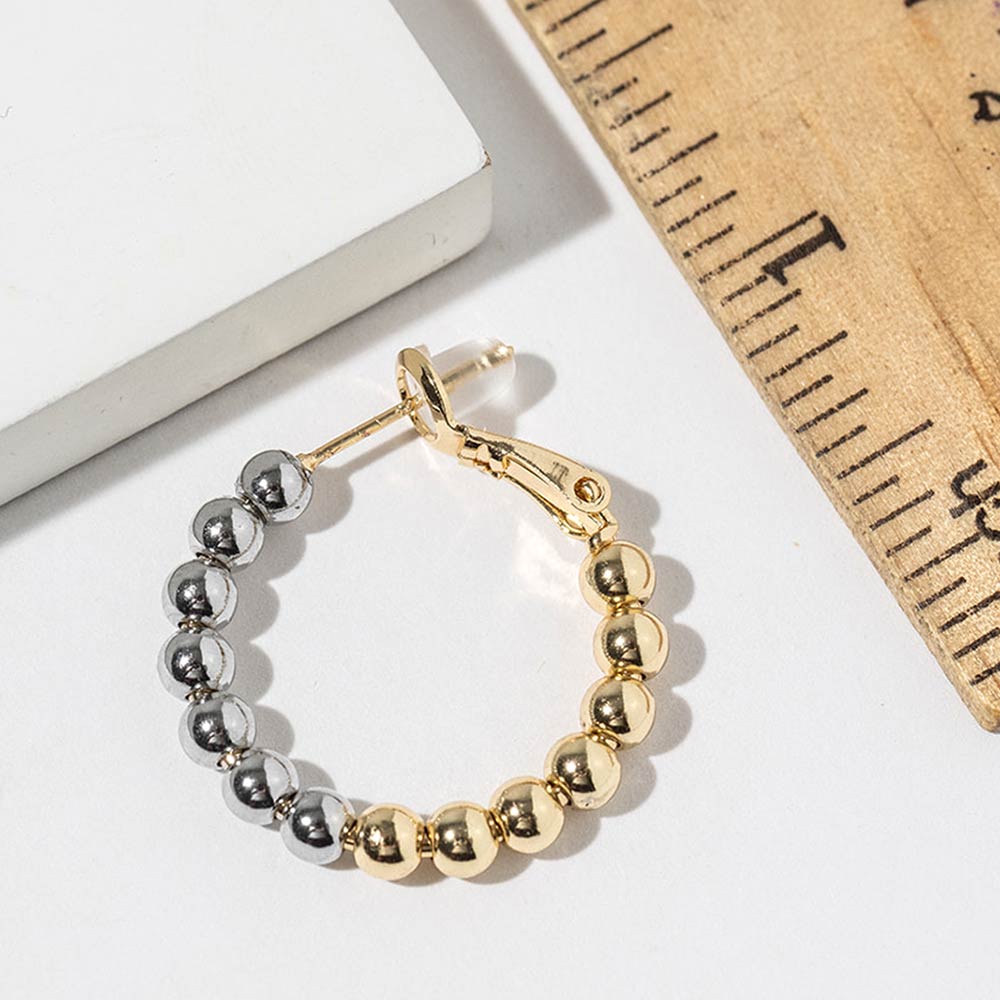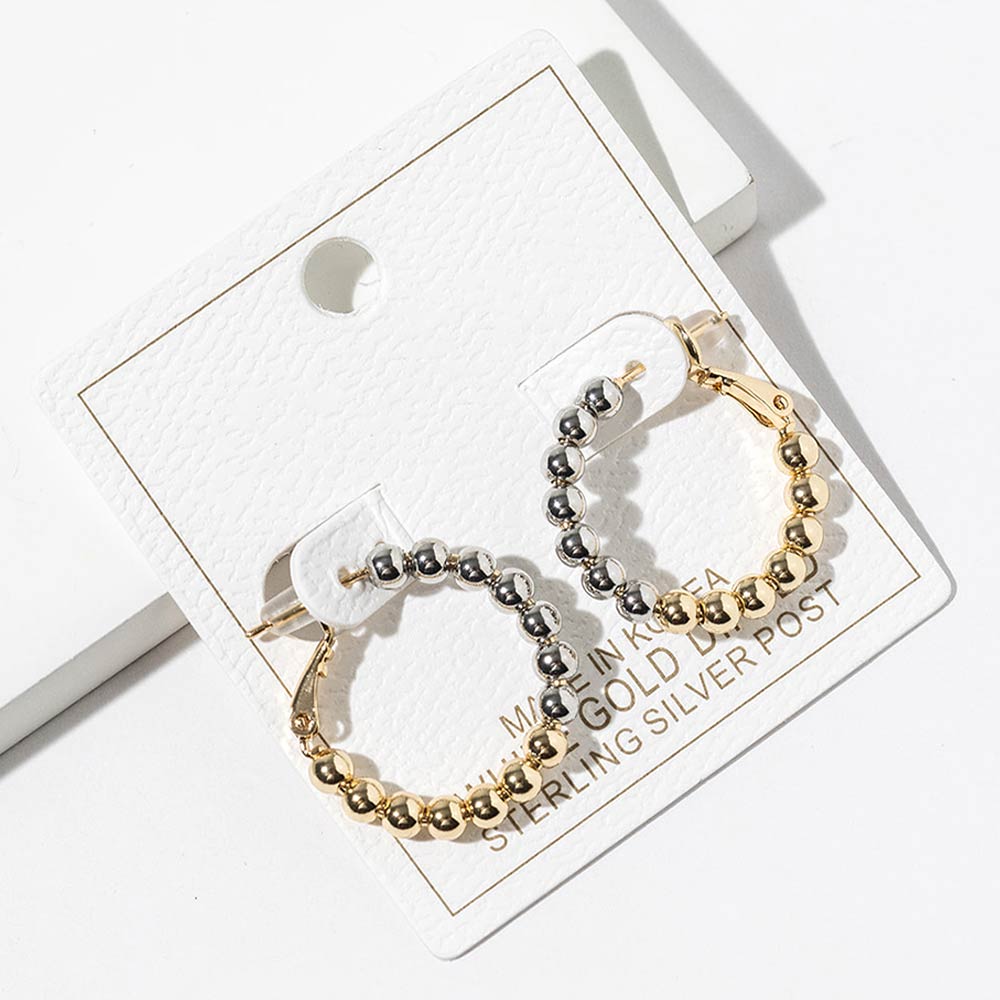 Details • Size : 0.8" X 0.9" • Omega Back • Stylish twisted hoop earrings designed with layered beaded detailing for a modern statement look. Lightweight yet eye-catching, these drop hoops add movement and texture to everyday outfits, workwear, or evening styles. A versatile accessory choice for trend-driven collections and boutique assortments. • Gold Dipped • Lead and Nickel Compliant • Made In Korea • Sterling Silver Post