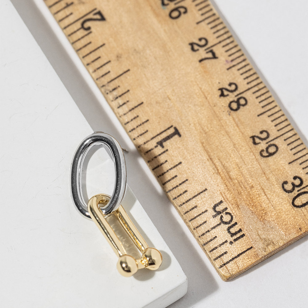 Details • Size : 0.3" X 1" • Sleek drop earrings featuring a clean linked bar design that delivers subtle movement and modern appeal. This minimalist silhouette pairs effortlessly with casual looks or polished outfits, making it a versatile choice for everyday wear, gifting displays, and contemporary boutique jewelry collections. • Lead and Nickel Compliant • Made In Korea • Gold Dipped • Sterling Silver Post