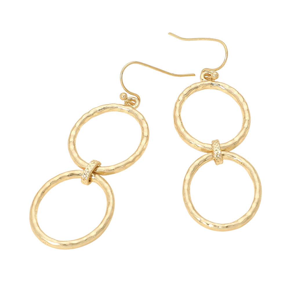 Hammered Metal Double Oval Ring Link Drop Earrings