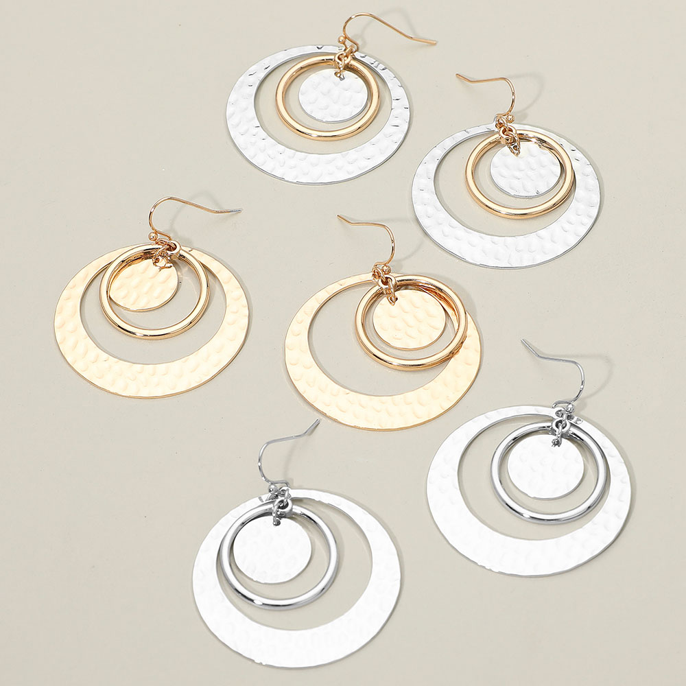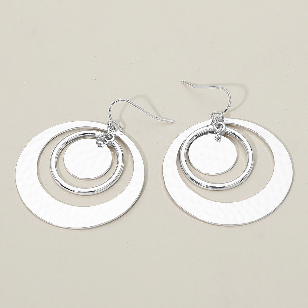 Hammered Metal Triple Circle Dangle Earrings Hammered Metal Triple Circle Dangle Earrings Hammered Metal Triple Circle Dangle Earrings