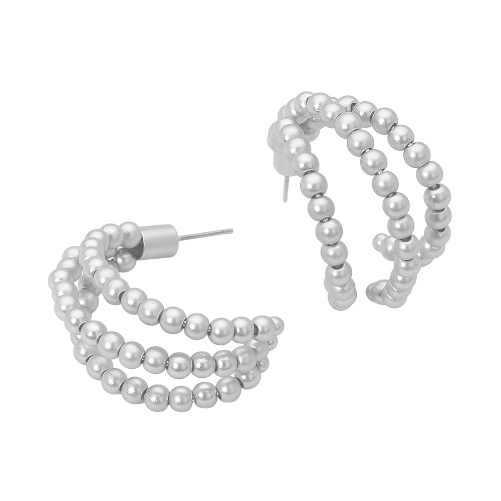 • Make a bold yet elegant statement with these triple beaded hoop earrings. Featuring three layered rows of polished spheres, they offer a contemporary twist on a timeless silhouette. Lightweight and refined, these hoops effortlessly elevate both casual and formal looks.