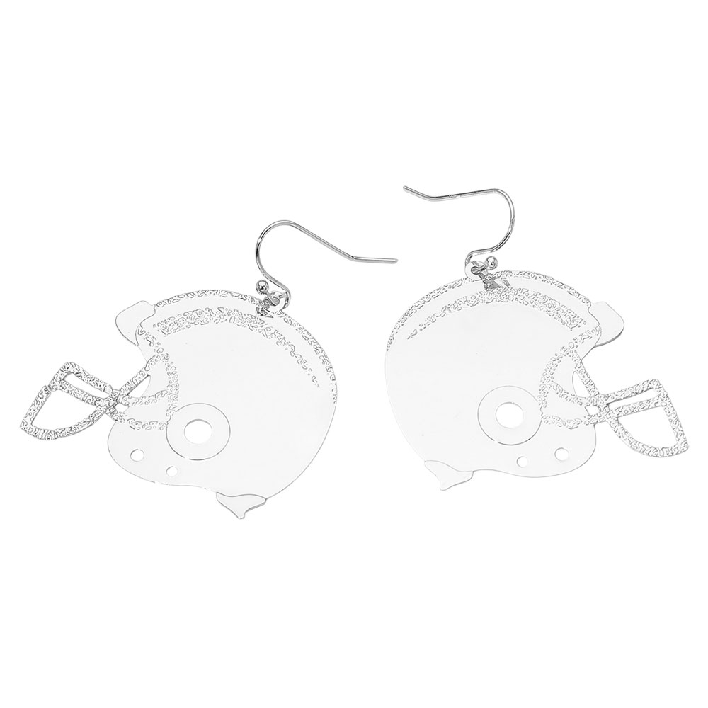 Details • Size : 1.5" X 2" • Fish Hook Back • Lightweight football helmet dangle earrings with etched detailing, perfect for gameday outfits, tailgate looks, and spirited fan accessories. Stylish sports-themed statement design for showing team pride at any event. • Brass • Lead and Nickel Compliant