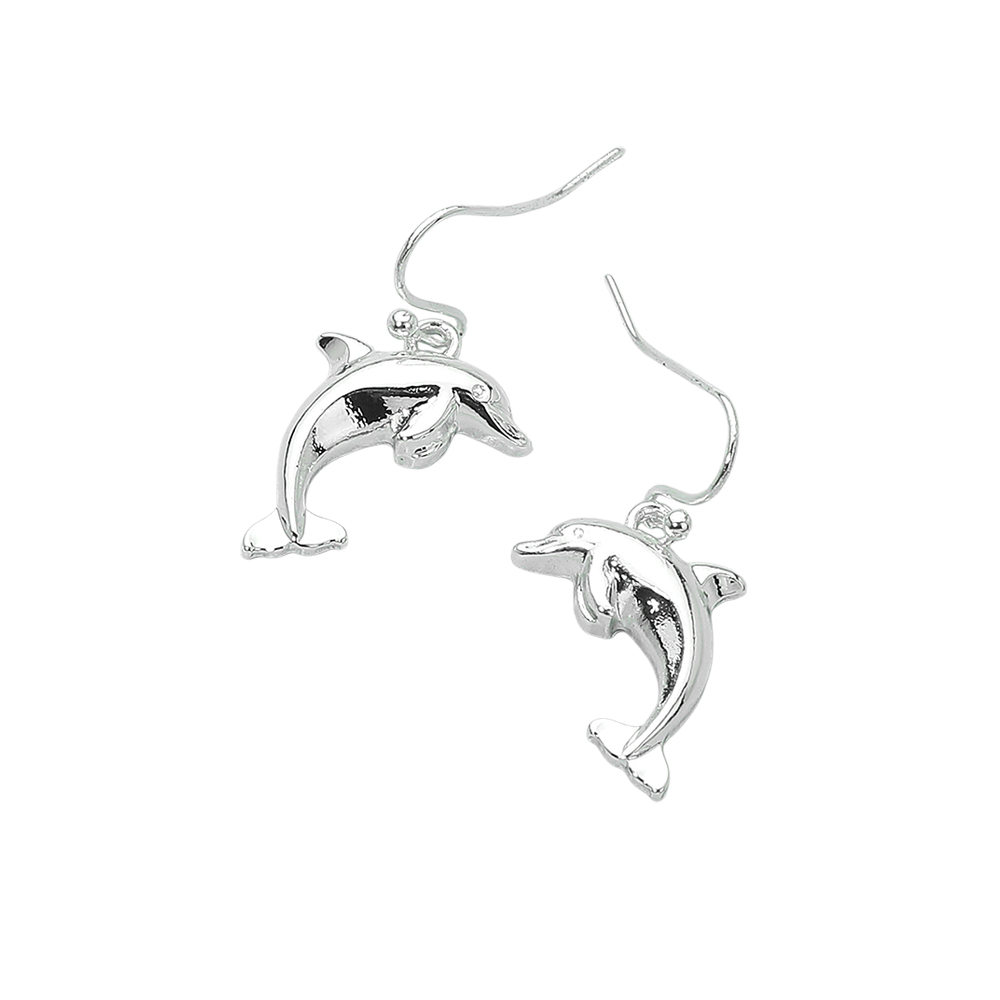 Details • Size : 0.6" X 1.2" • Fish Hook Back • Playful dolphin dangle earrings featuring a lightweight hook design that creates gentle movement with every wear. Inspired by ocean life, this charming accessory adds a fun yet timeless accent to everyday outfits, beach-themed collections, summer styling, and gift-ready assortments that customers instantly love. • Lead and Nickel Compliant