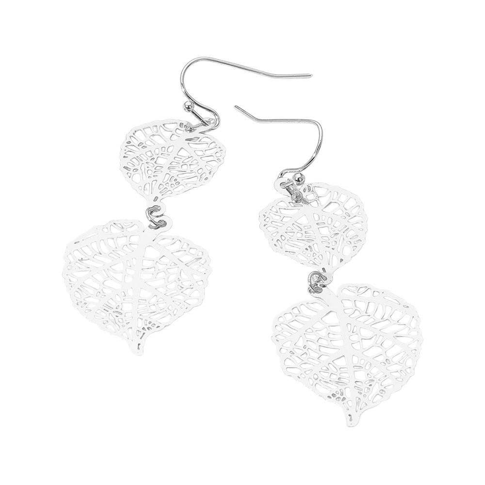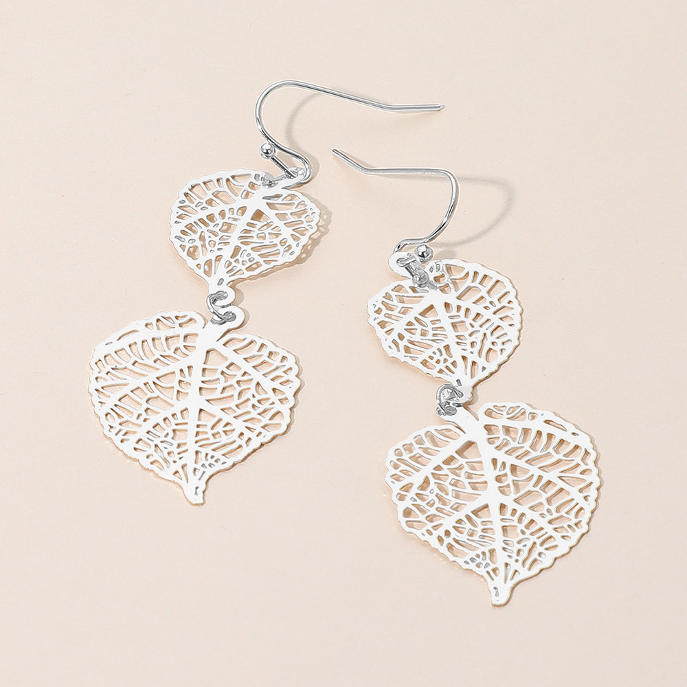 Metal Filigree Double Leaves Drop Dangle Earrings