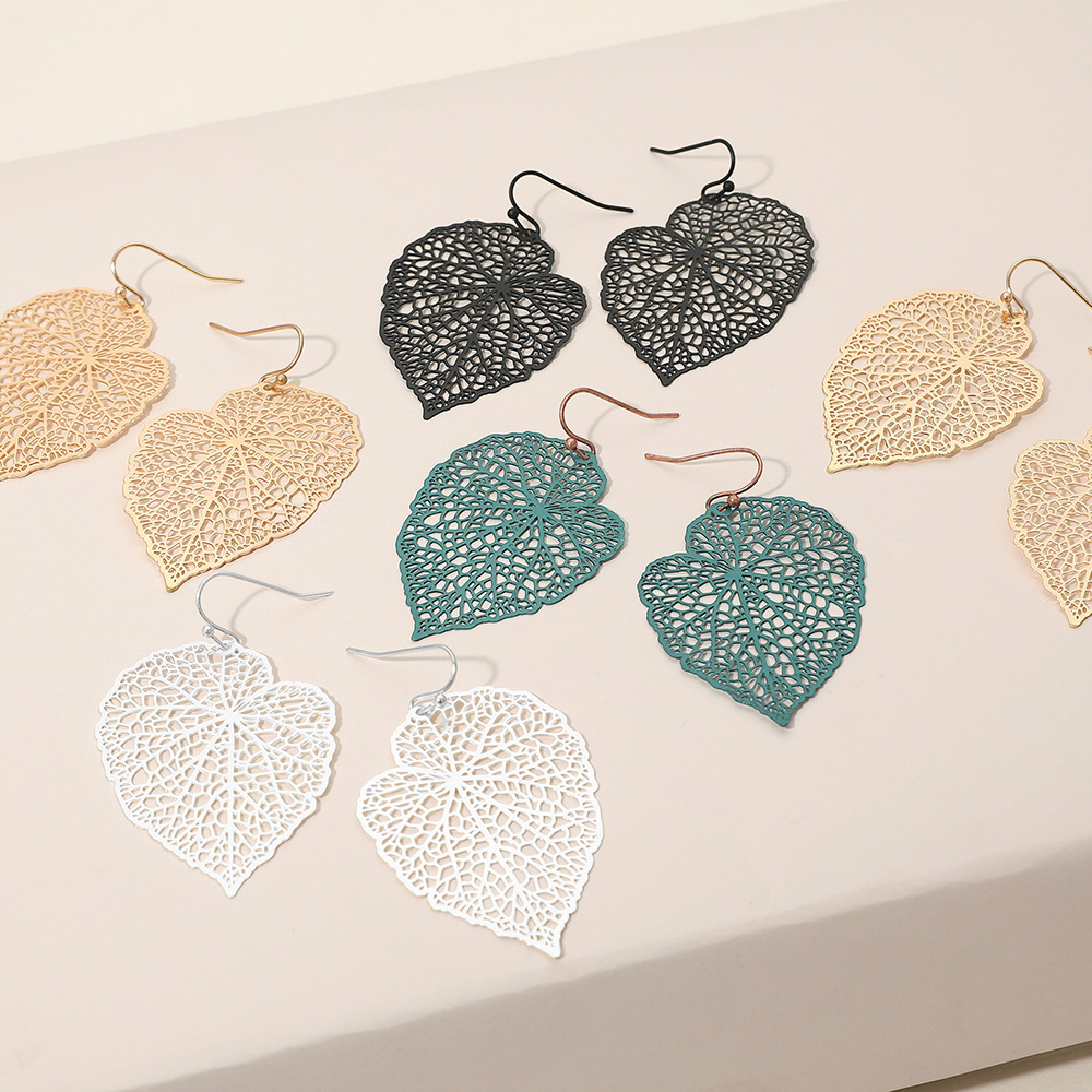 • Elevate your style with these lightweight filigree leaf drop earrings. Featuring an intricate cutout design, they add a touch of elegance and nature-inspired charm to everyday and special outfits.