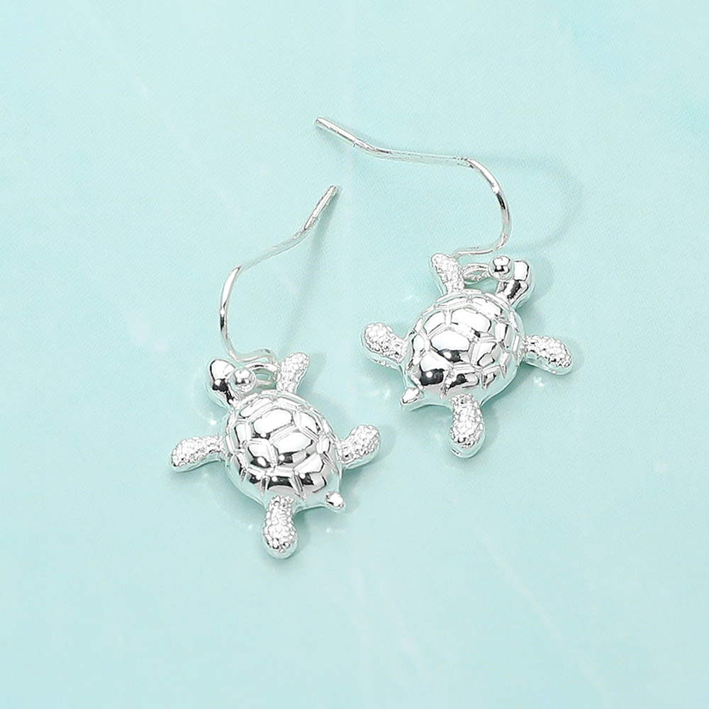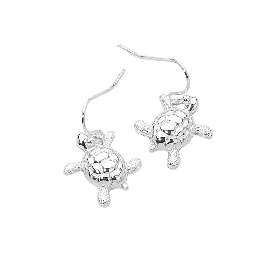 Details • Size : 0.6" X 1" • Fish Hook Back • Playful sea turtle dangle earrings with a lightweight hook silhouette that adds movement and charm to everyday outfits. Inspired by ocean themes, this whimsical accessory is perfect for beach lovers, summer collections, and gift-ready assortments, offering a fun yet timeless design that pairs easily with casual and resort-style looks. • Lead and Nickel Compliant