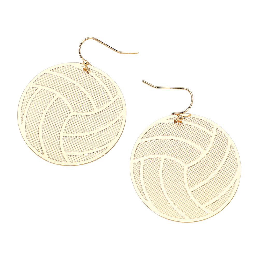 Details • Size : 1.5" X 1.8" • Fish Hook Back • Stylish round volleyball dangle earrings featuring a detailed cutout sports-ball design. Lightweight and perfect for gameday outfits, team spirit events, or everyday wear for volleyball lovers. A fun accessory to show support and elevate any sporty look. • Brass • Lead and Nickel Compliant