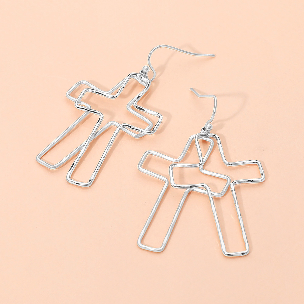 Metal Wire Open Double Cross Dangle Earrings Metal Wire Open Double Cross Dangle Earrings