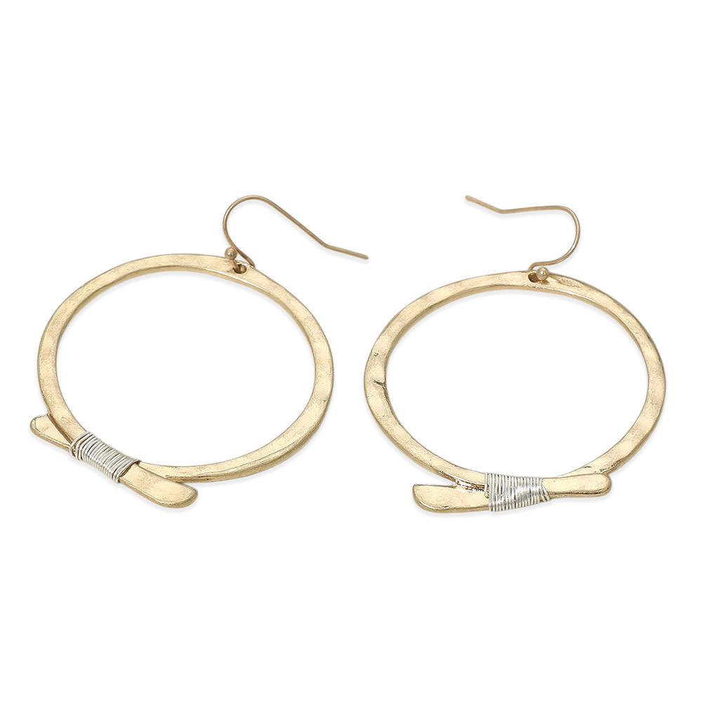 Details • Size : 1.6" X 2" • Fish Hook Back • Sleek hoop earrings featuring a clean circular silhouette accented with a subtle wrapped bar detail for added texture and visual interest. Designed for lightweight comfort and effortless styling, these modern hoops transition easily from casual looks to polished outfits, making them a versatile choice for everyday wear and curated accessory collections. • Lead and Nickel Compliant