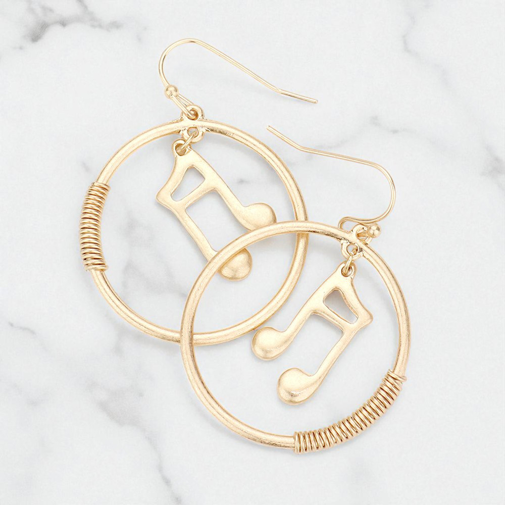 Music Notes Accented Wire Wrapped Open Metal Circle Dangle Earrings