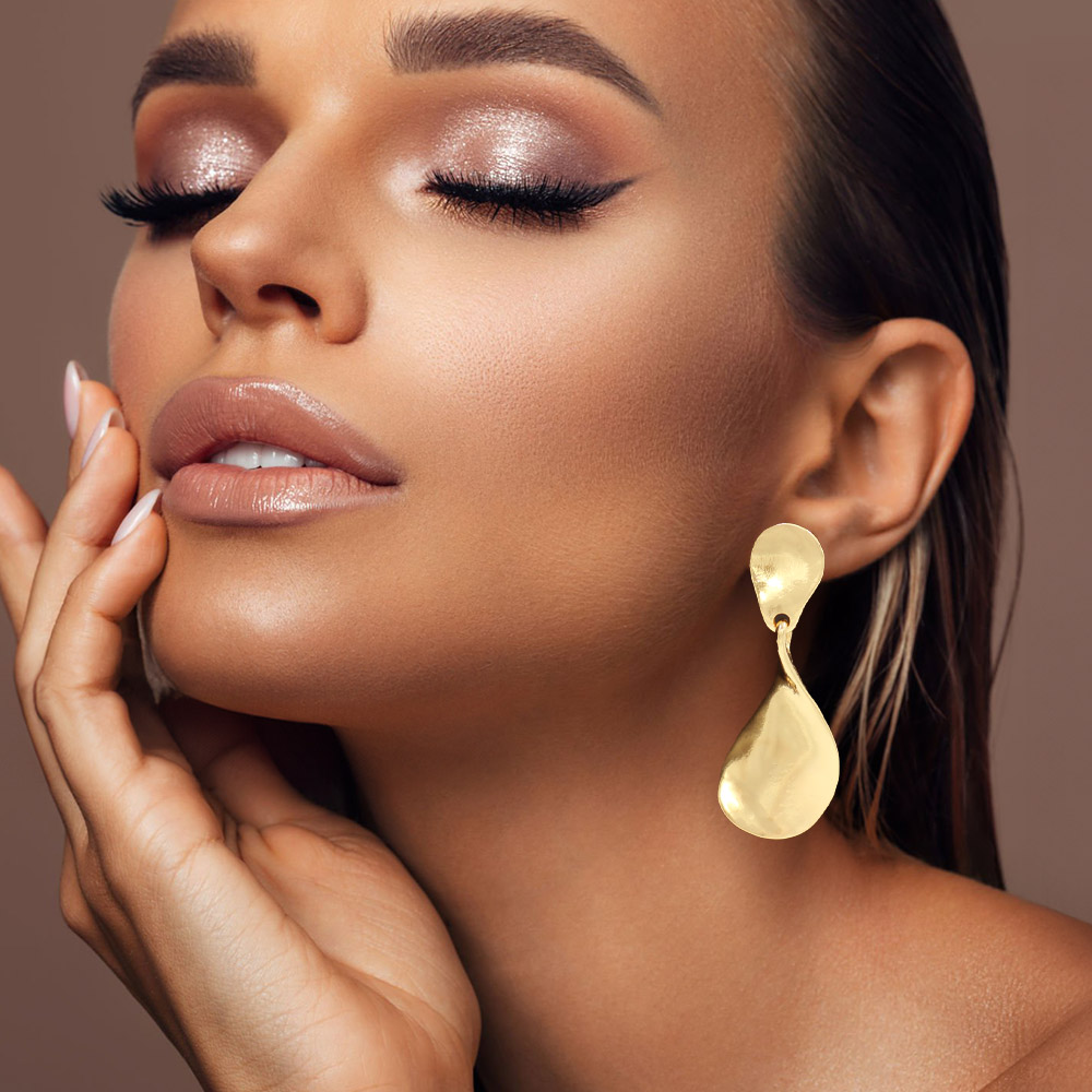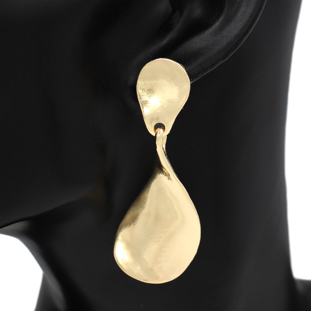 Details • Size : 0.8" X 2.3" • Post Back • Make a bold impression with these organic drop statement earrings featuring a fluid sculptural design that creates soft, modern movement. Their eye-catching silhouette adds an artistic touch to any outfit, offering a standout accessory perfect for both everyday wear and elevated looks. • Lead and Nickel Compliant