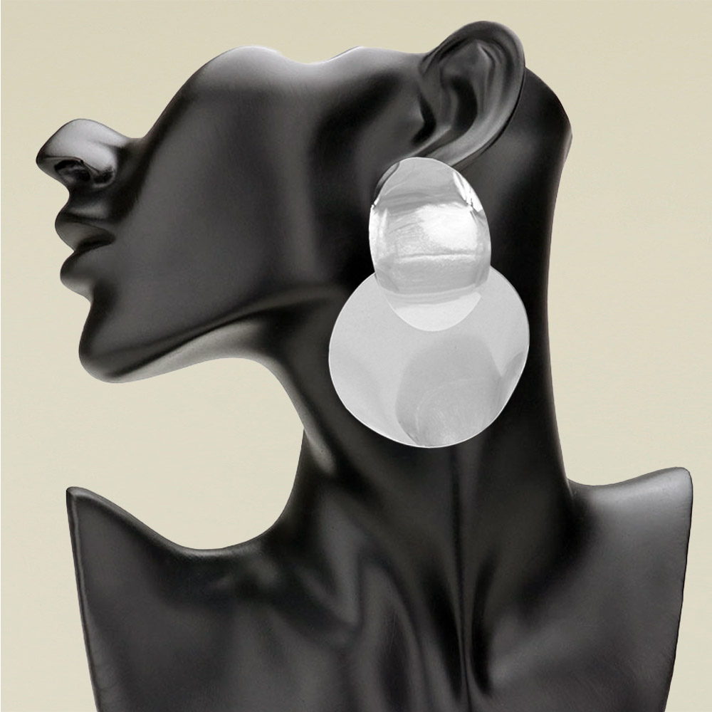 • Elegant layered oval drop earrings featuring a smooth dual-shape design with a modern artistic touch. Lightweight and stylish, these statement earrings add a sophisticated accent to both casual and dressy looks, perfect for any occasion.