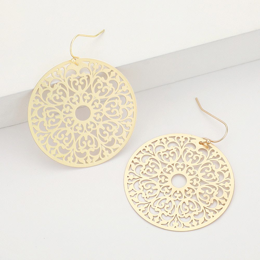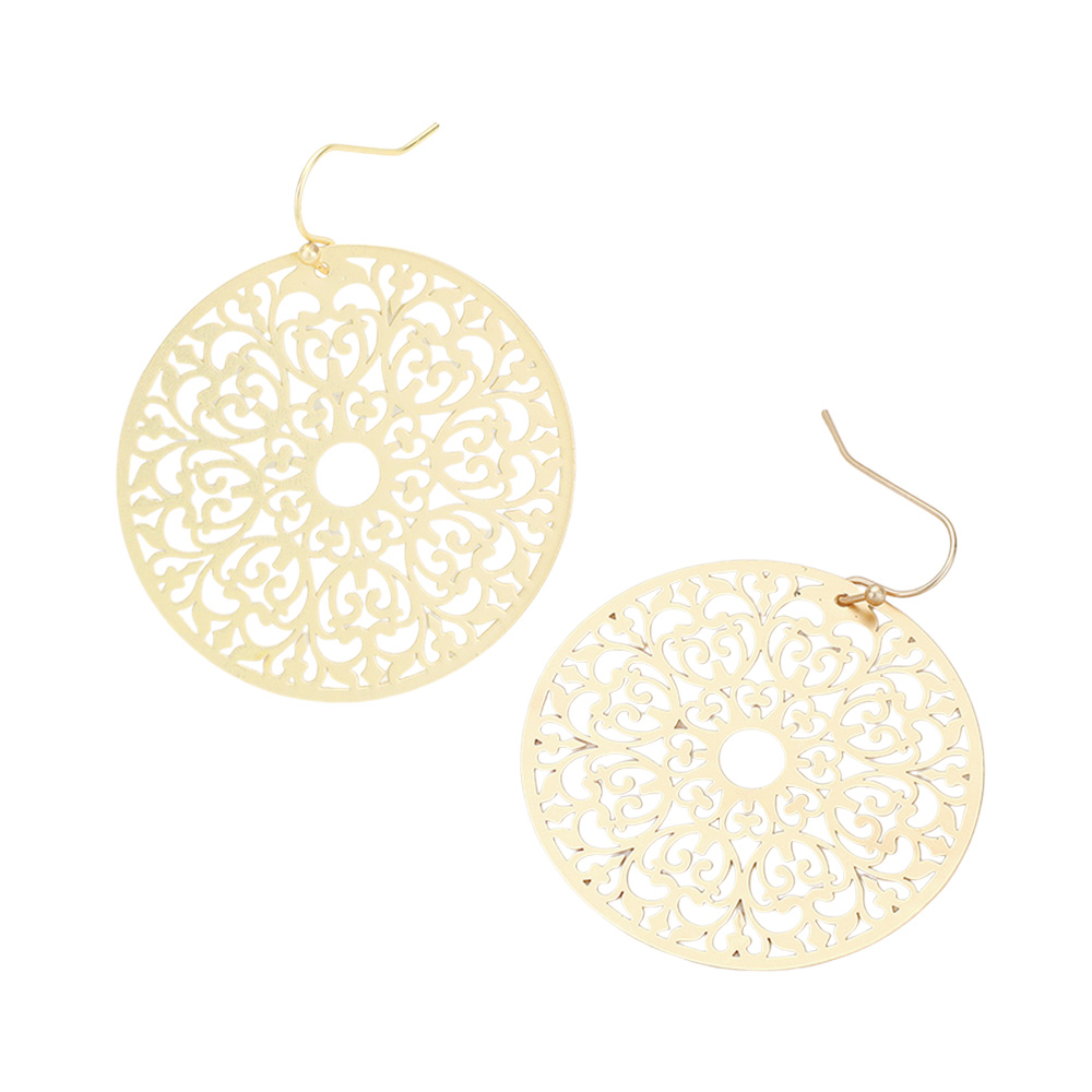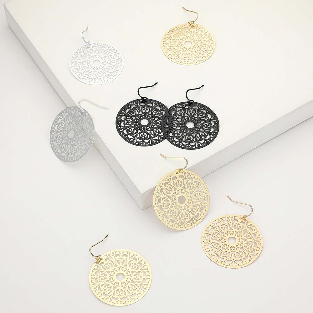 Leather Trim Filigree Metal Diamond Shaped Dangle Earrings