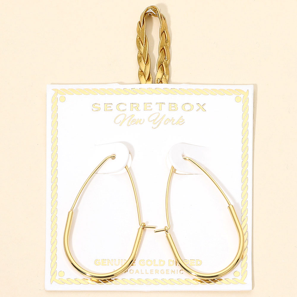 SECRET BOX_Genuine Gold Dipped Elongated Oval Hoop Earrings SECRET BOX_Genuine Gold Dipped Elongated Oval Hoop Earrings