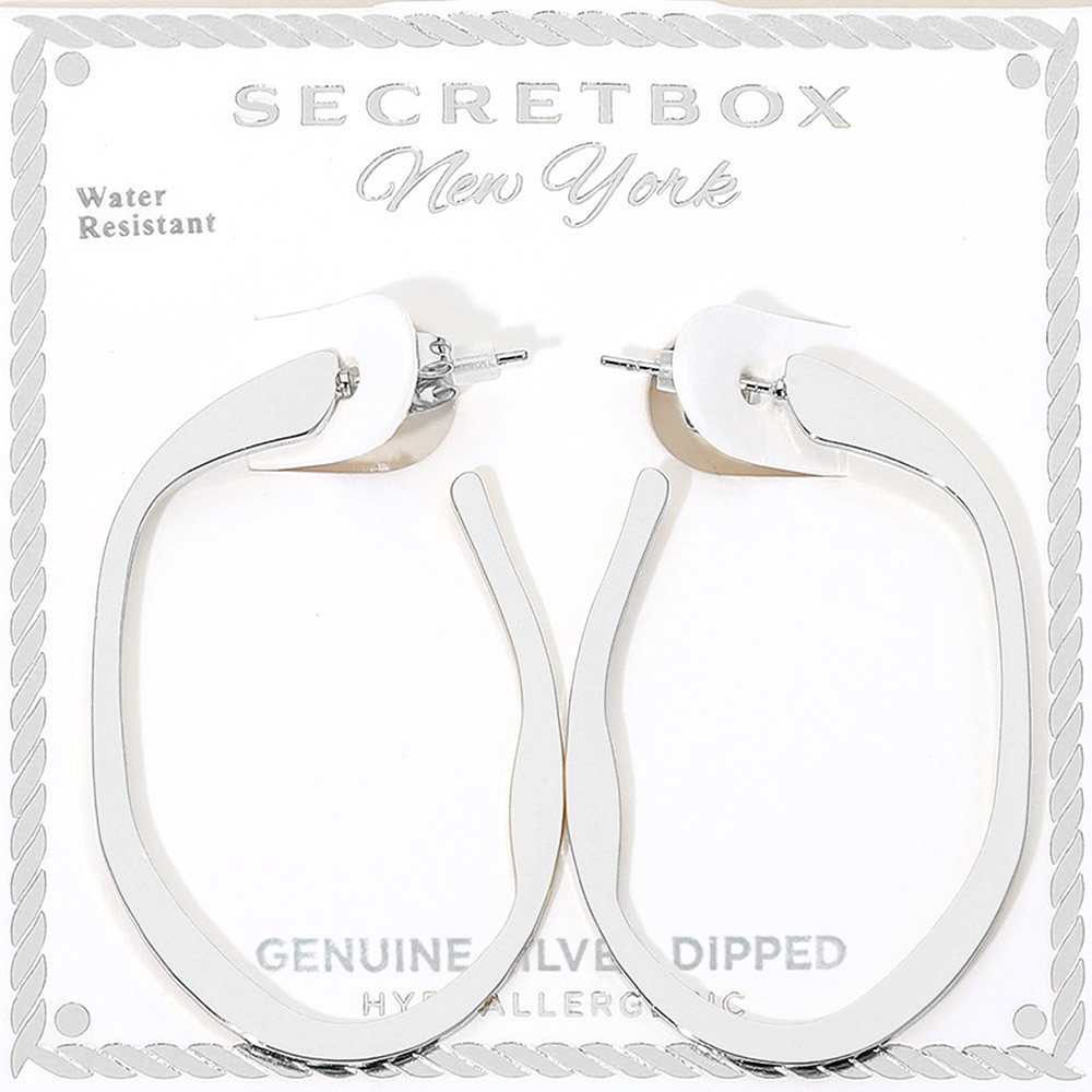 SECRET BOX_Genuine Silver Dipped Organic Shape Flat Open Hoop Earrings SECRET BOX_Genuine Silver Dipped Organic Shape Flat Open Hoop Earrings SECRET BOX_Genuine Silver Dipped Organic Shape Flat Open Hoop Earrings
