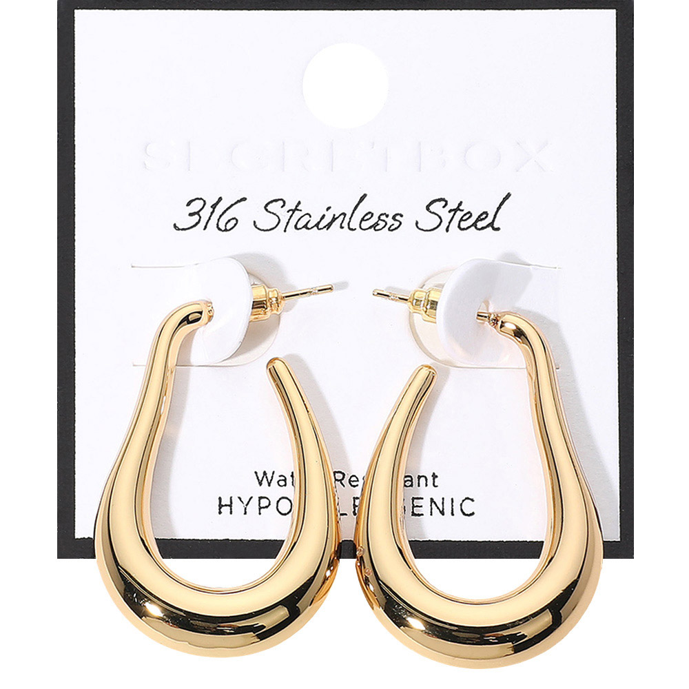 SECRET BOX_Stainless Steel Hypoallergenic Teardrop Hoop Earrings