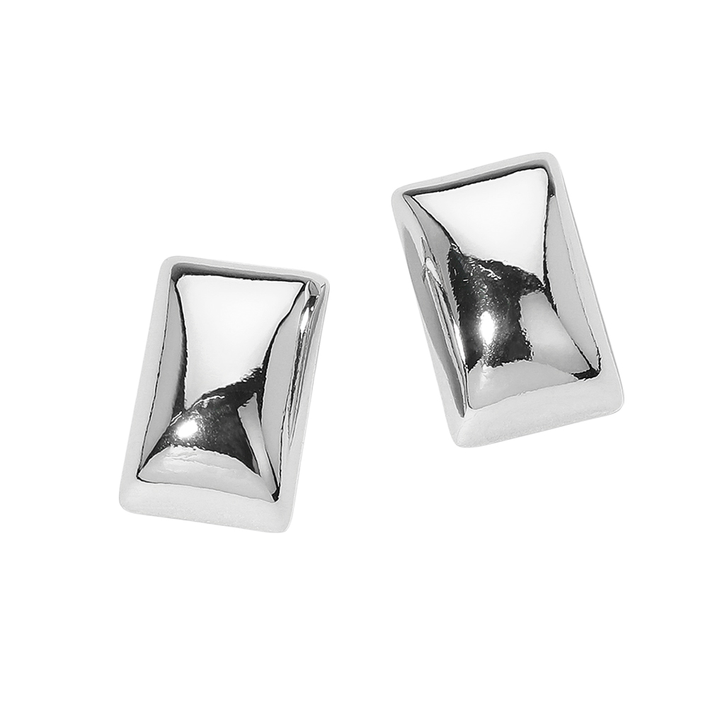 Details • Size : 0.75" X 1" • Post Back • Sleek rectangular pillow stud earrings featuring a smooth, polished surface and modern geometric shape. Lightweight and stylish, perfect for adding a contemporary touch to everyday outfits or elevating special-occasion looks. • Sterling Silver Dipped • Lead and Nickel Compliant • Made In Korea