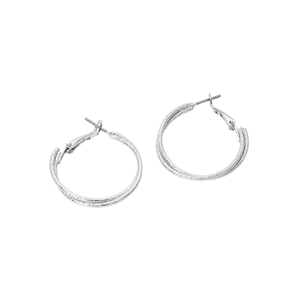 Details • Size: 1.2" X 1.2" • Omega Back • Timeless hoop earrings designed with a refined textured finish that adds subtle shine and dimension. Lightweight and easy to wear, this versatile silhouette pairs effortlessly with everyday outfits or elevated looks, making it a staple accessory for boutiques and curated jewelry collections year-round. • Sterling Silver Dipped • Lead and Nickel Compliant