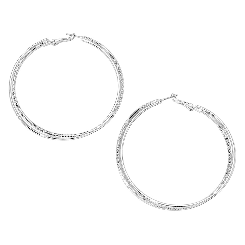 Silver Dipped Textured Layered Hoop Earrings Silver Dipped Textured Layered Hoop Earrings