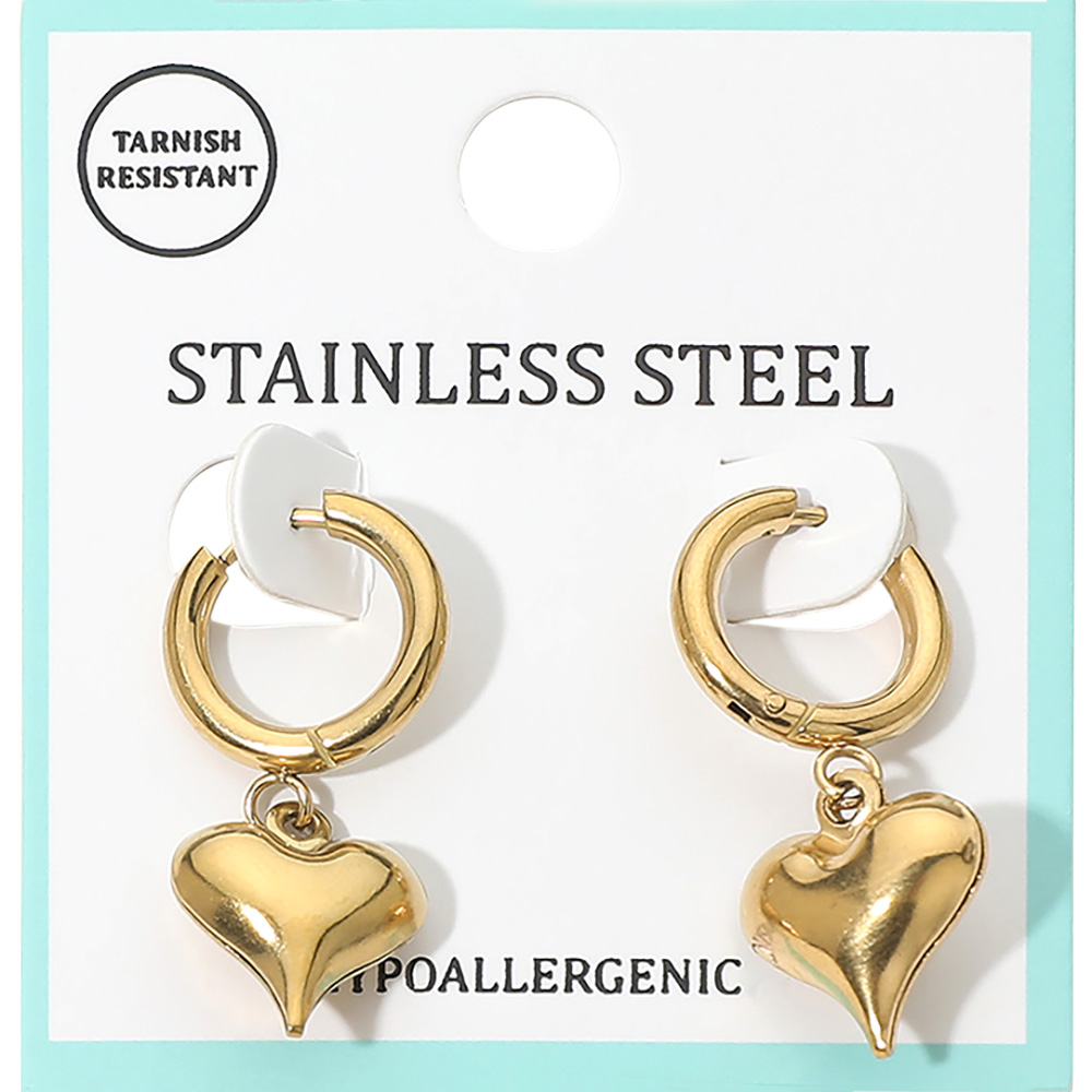 Details • Size : 0.6" X 1.25" • Huggie Back • Charming heart dangle hoop earrings designed to add a playful yet polished touch to everyday looks. The compact hoop silhouette with a smooth heart accent offers easy styling for casual outfits, date nights, or gift-ready moments with timeless appeal. • Hypoallergenic • Lead and Nickel Compliant • Stainless Steel