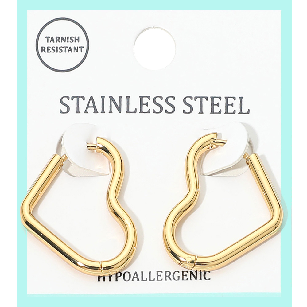 Stainless Steel Heart Huggie Hoop Earrings