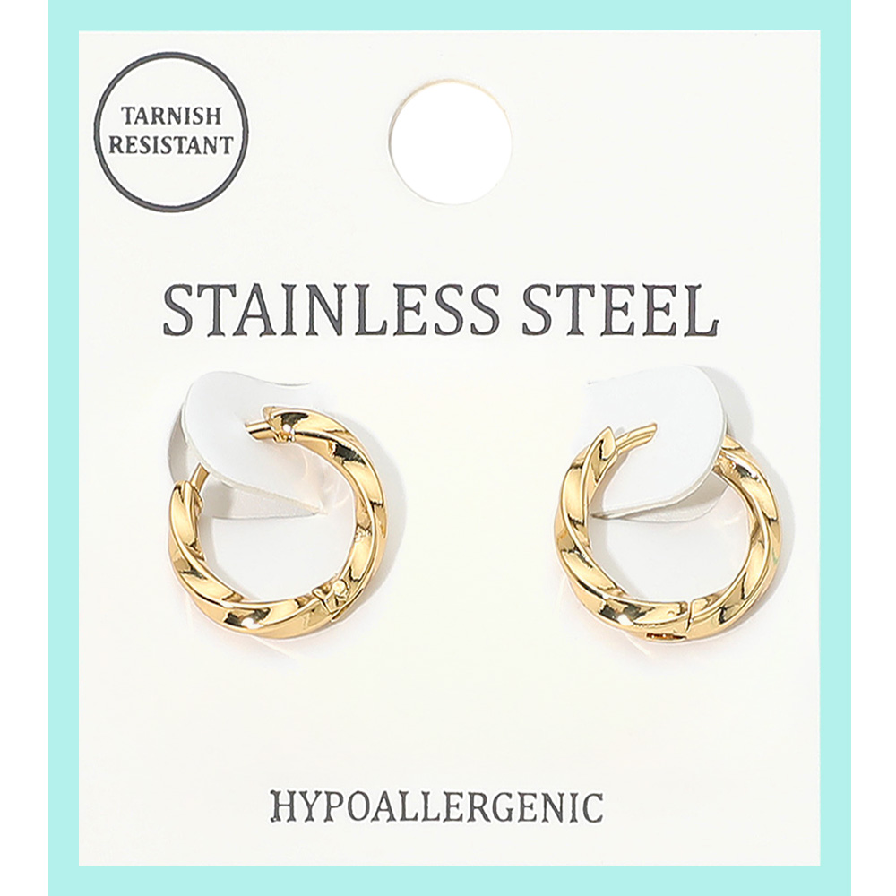 Stainless Steel Twisted Mini Huggie Hoop Earrings