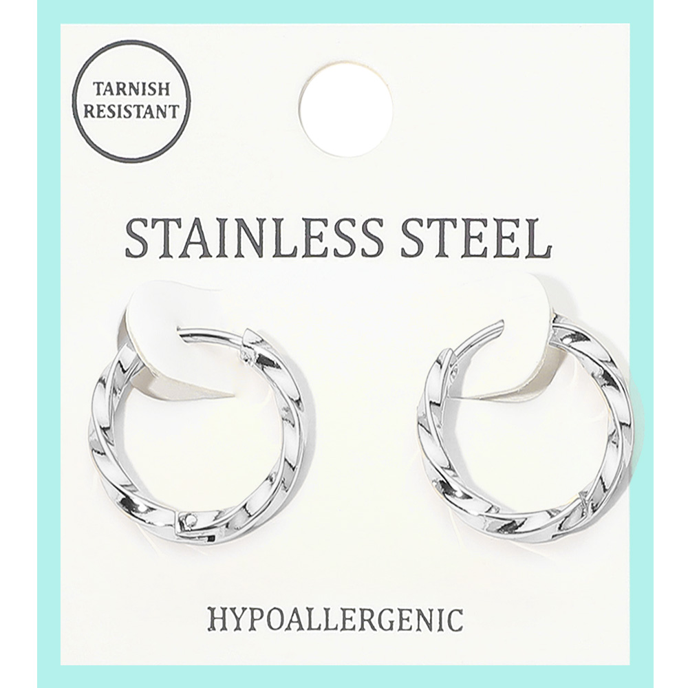 Stainless Steel Twisted Small Huggie Hoop Earrings