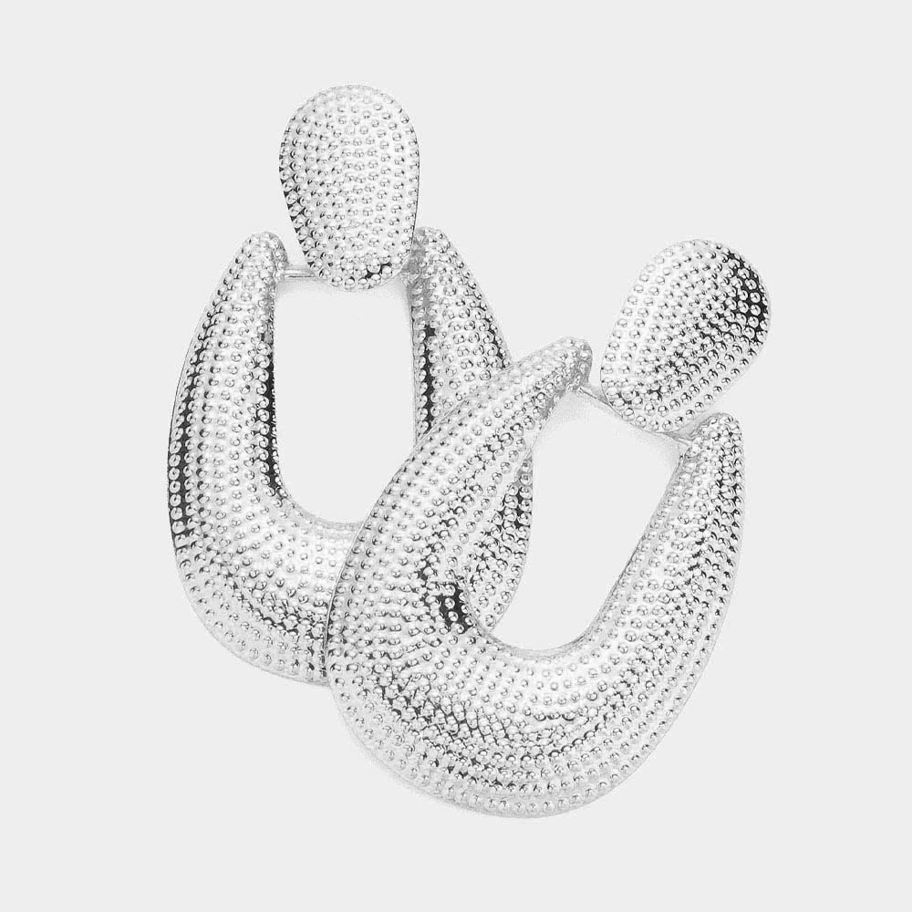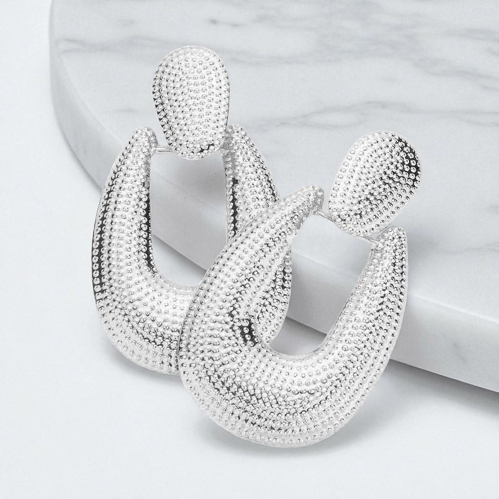 White Gold Dipped CZ Stone Paved Geometric Hoop Earrings