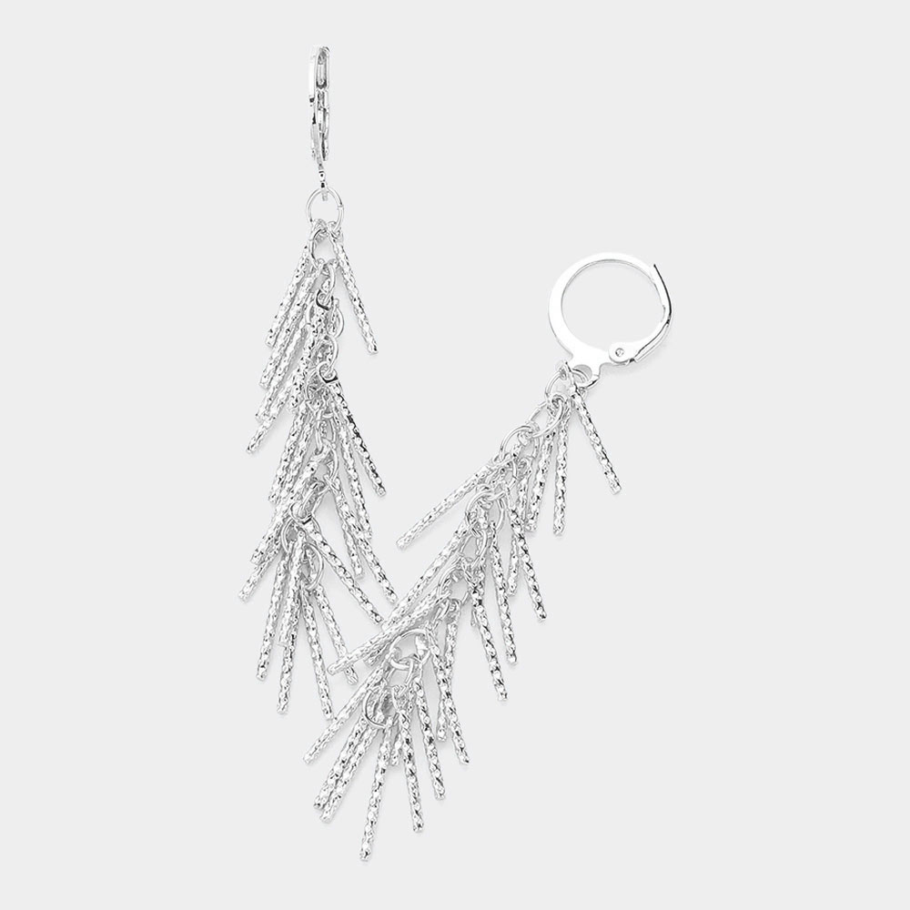 Open Teardrop Accented Rhinestone Fringe Dangle Evening Earrings