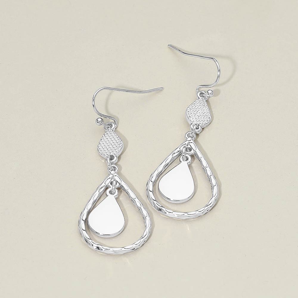• Add refined movement to any look with these textured teardrop frame drop earrings. Designed with an open teardrop outline and a smooth inner drop accent, they create a balanced silhouette with gentle shine and dimension. Lightweight and easy to wear, this versatile style pairs well with casual outfits, workwear, and evening looks. A timeless accessory ideal for everyday styling, gifting, and seasonal jewelry collections.