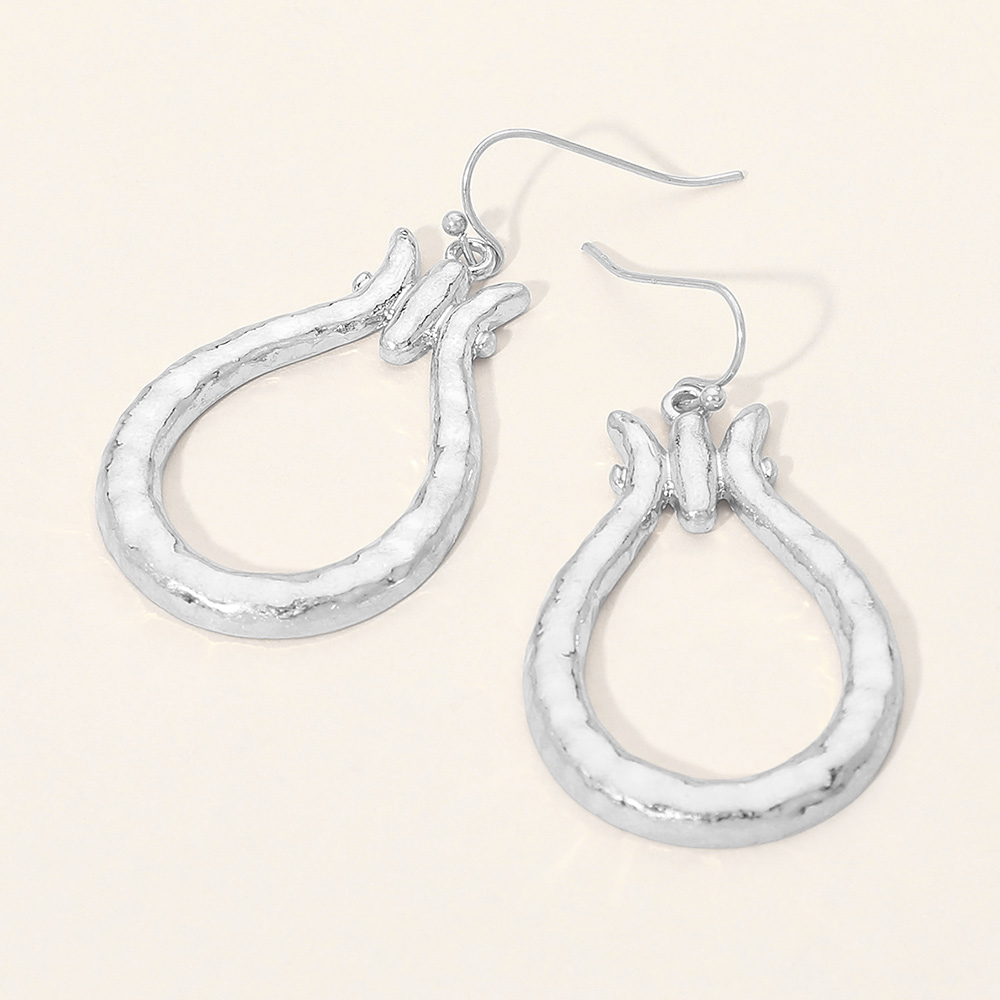 • Stylish open teardrop dangle earrings featuring an organic, hand-textured finish that adds depth and dimension to a modern silhouette. Designed for lightweight comfort and natural movement, these earrings elevate everyday outfits while pairing effortlessly with dressy looks, making them a versatile choice for gifting and boutique jewelry collections.