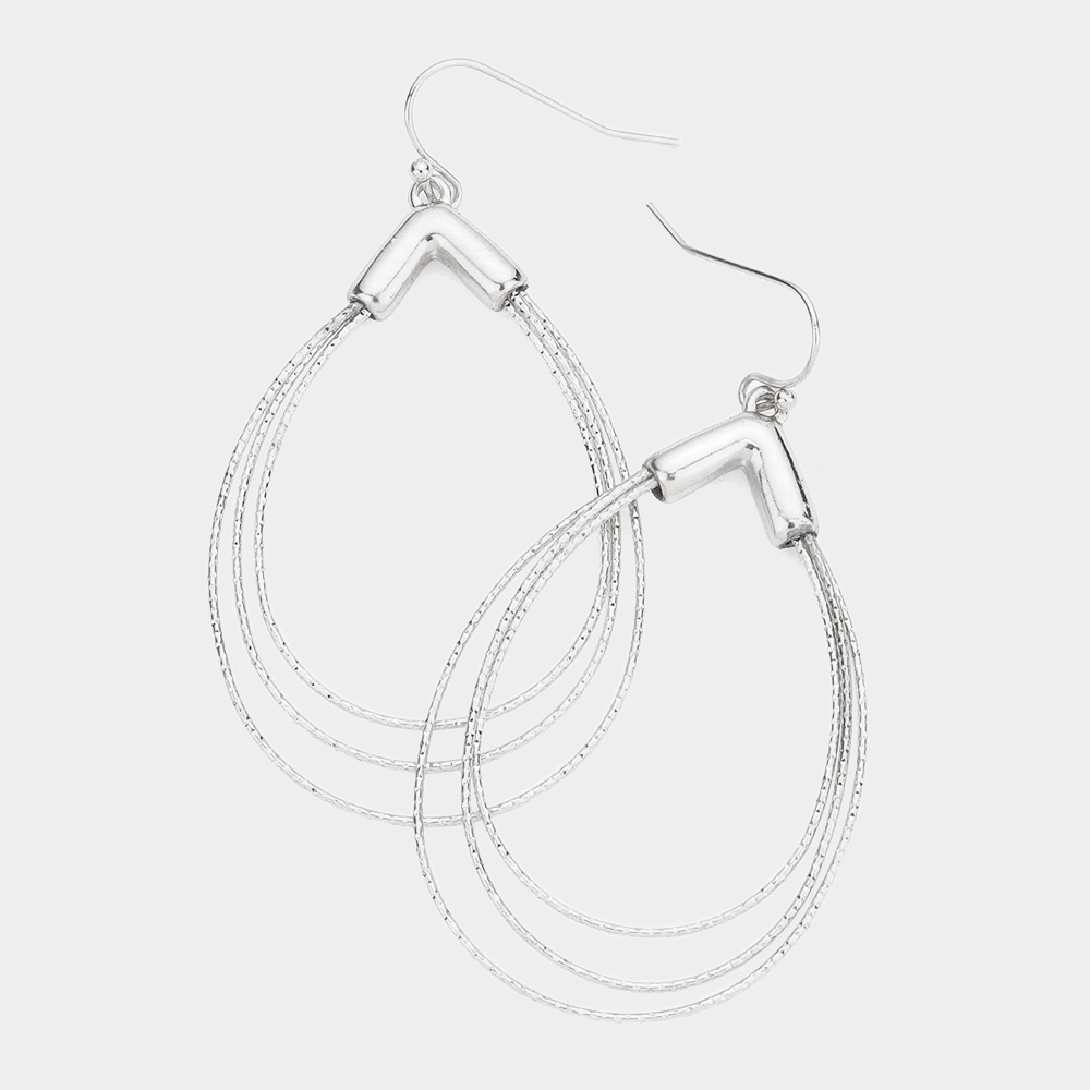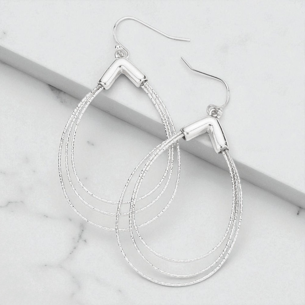 Textured Metal Triple Wire Open Teardrop Dangle Earrings