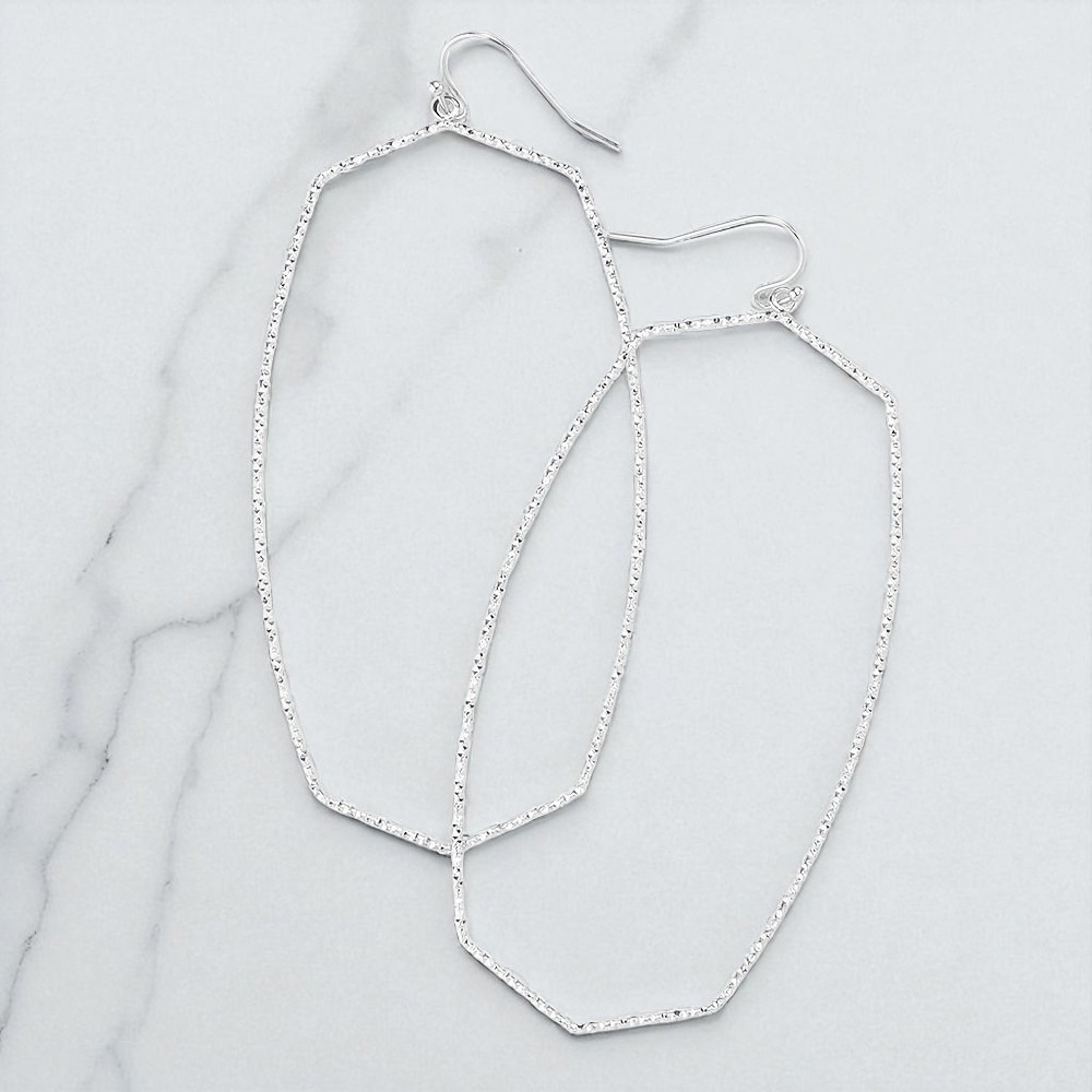 Textured Thin Metal Open Hexagon Earrings