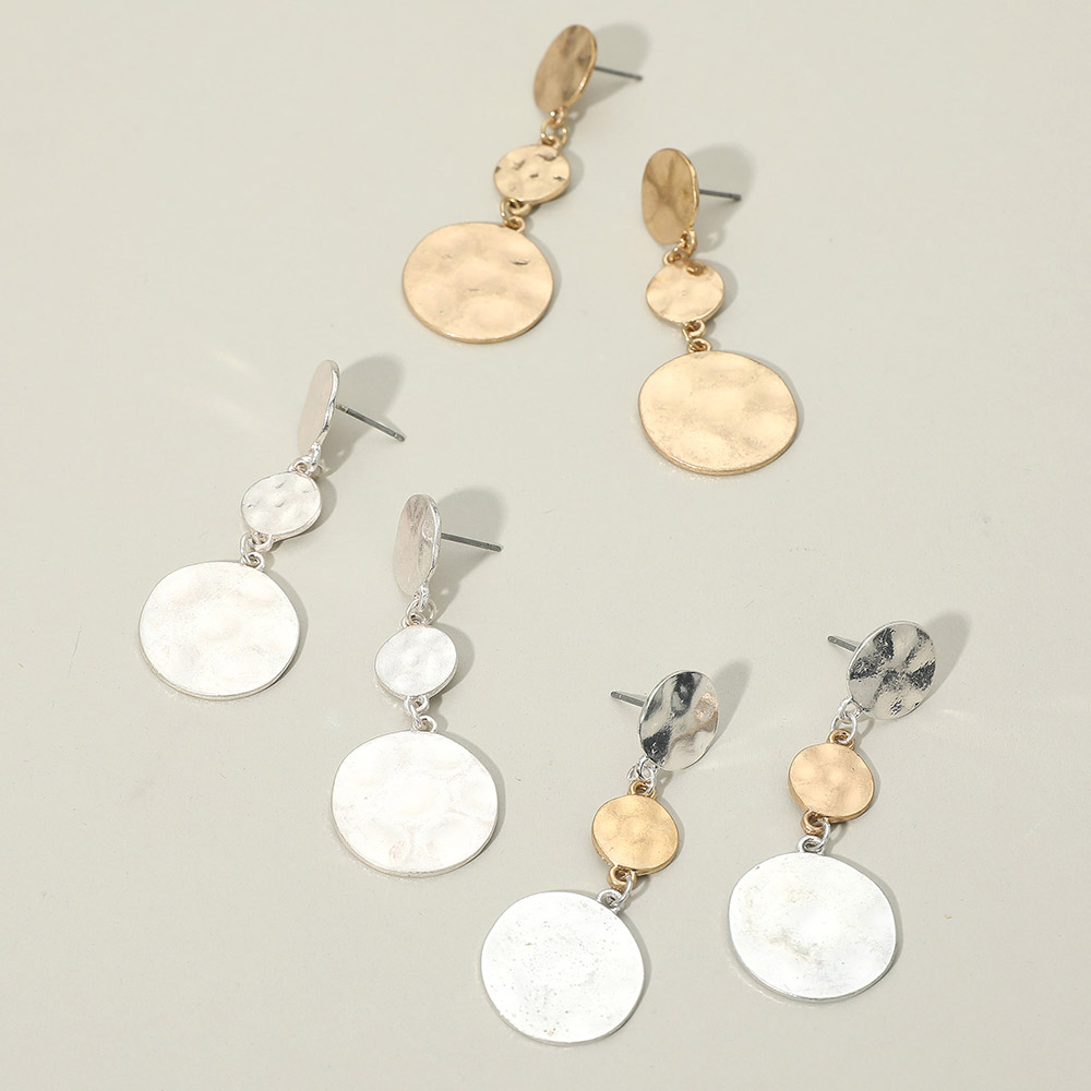 Triple Hammered Metal Disc Link Drop Earrings Triple Hammered Metal Disc Link Drop Earrings Triple Hammered Metal Disc Link Drop Earrings