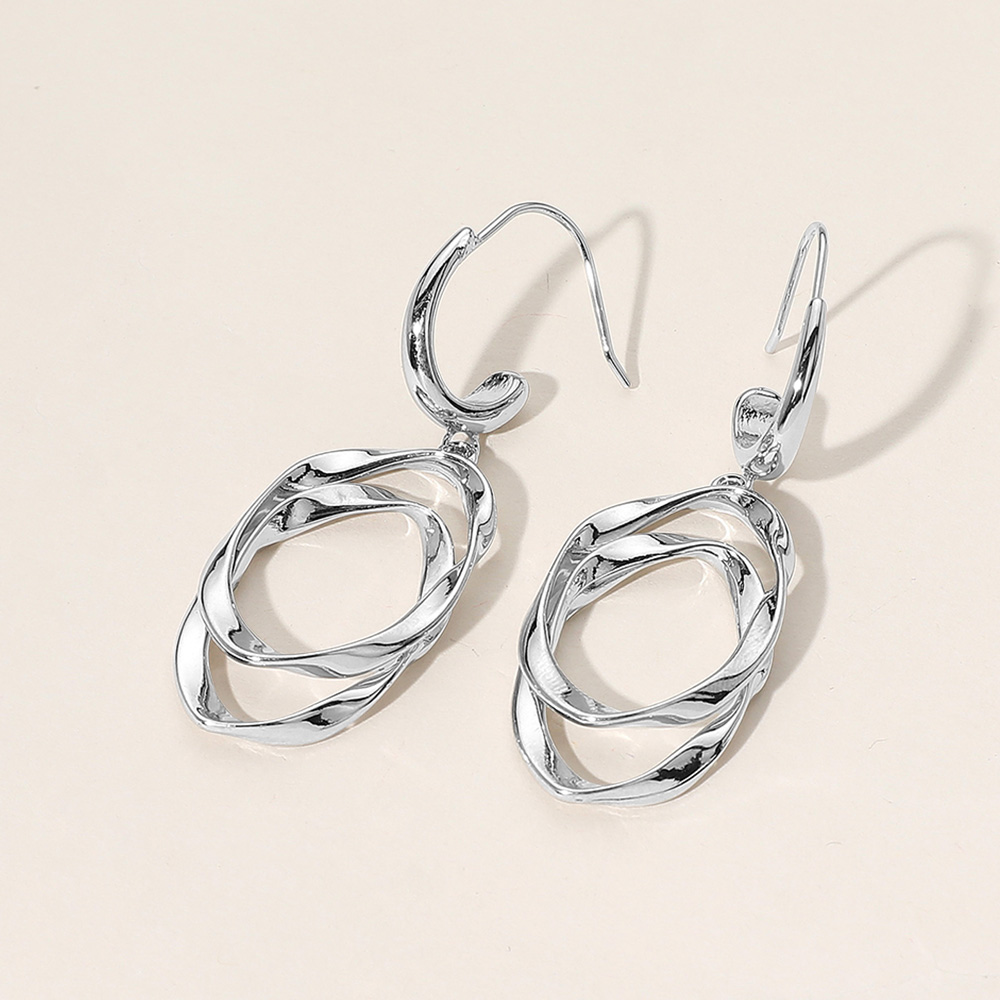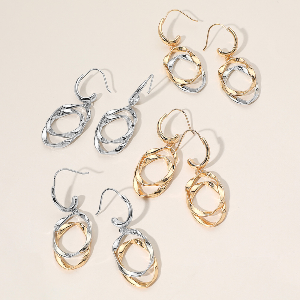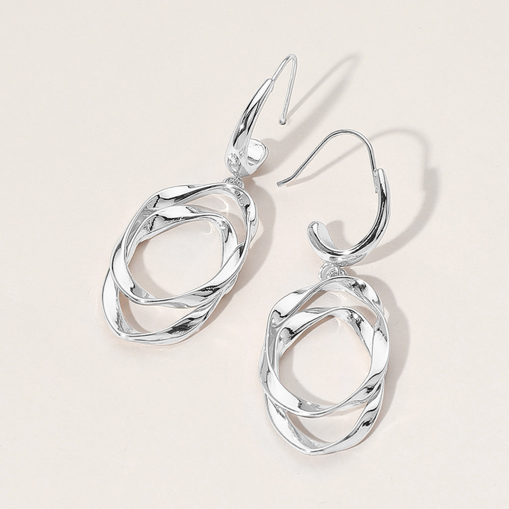 Details • Size : 0.8" X 2" • Hook Back • Chic open oval drop earrings featuring a twisted, sculptural design that adds a touch of modern elegance. Lightweight and versatile, these statement dangle earrings elevate any outfit with effortless sophistication and timeless appeal. • Lead and Nickel Compliant