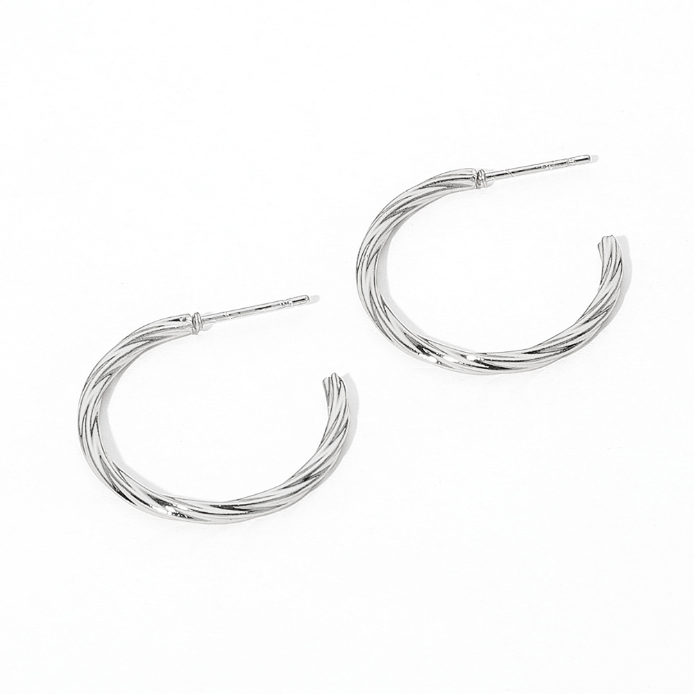 Details • Size : 1" X 1" • Post Back • Tarnish Resistant • Bold yet minimal triple-curve hoop stud earrings designed with a smooth layered silhouette for modern everyday style. A versatile accessory that transitions effortlessly from casual outfits to evening looks, adding polished dimension without overpowering your ensemble. • Hypoallergenic • Stainless Steel