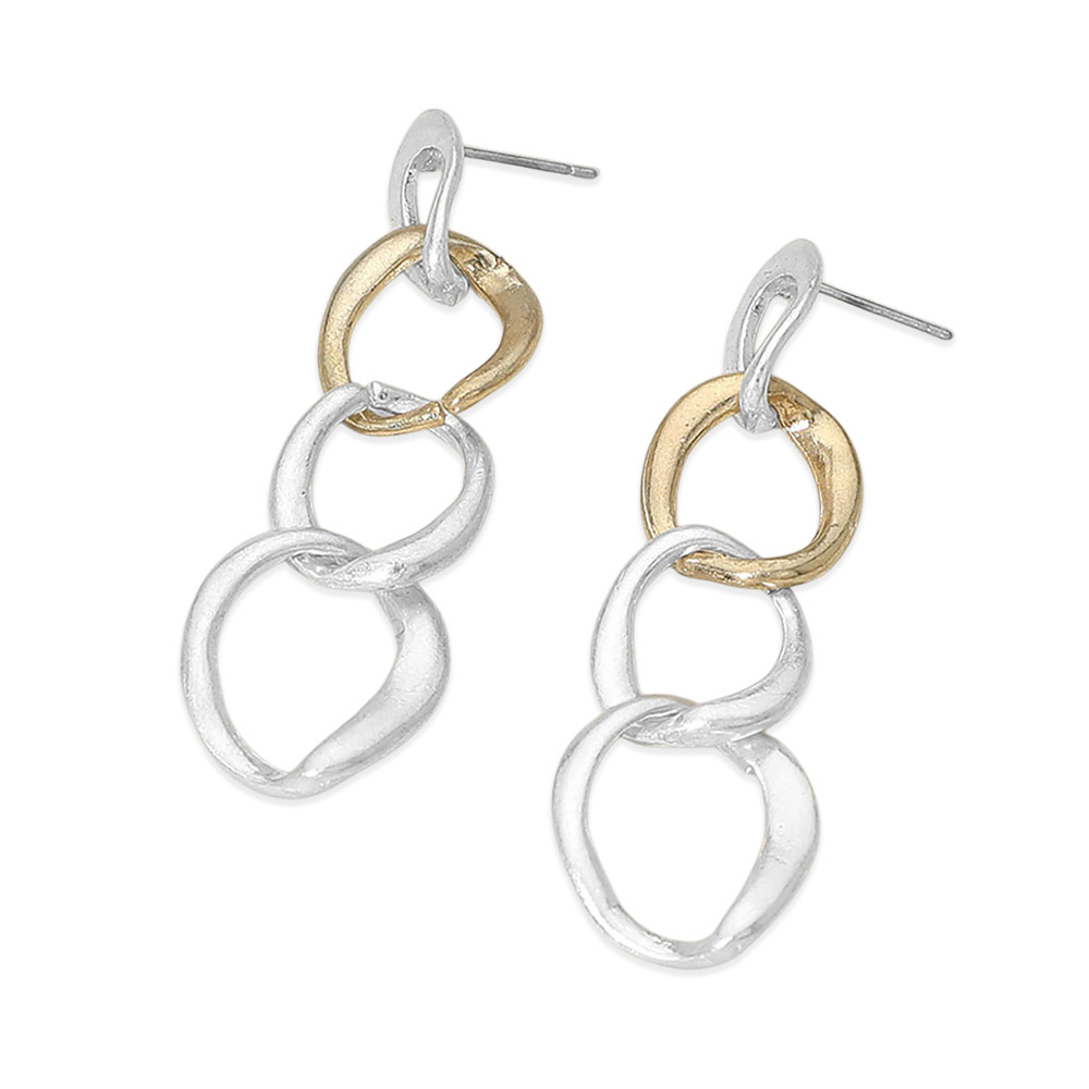 Two Tone Metal Link Chain Drop Earrings